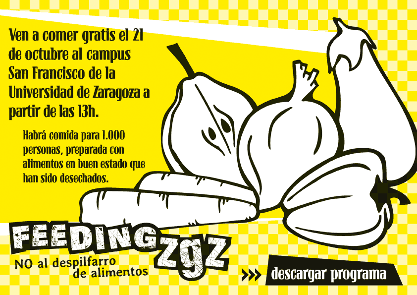El domingo 21 de octubre, ven a comer gratis al campus San Francisco de la Universidad de Zaragoza a partir de las 13h. Habrá comida para 1.000 personas preparada con alimentos en buen estado que han sido desechados.