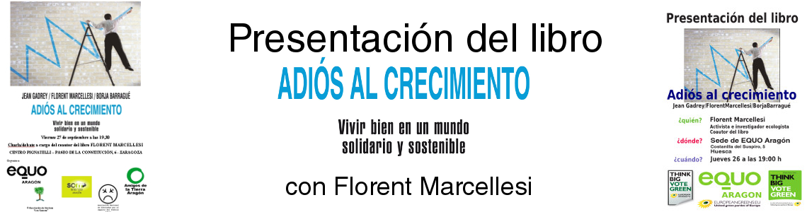 CartelEl próximo jueves 26 a las 19:00 horas, Florent Marcellesi, coautor del libro Adiós al crecimiento, nos visitará en nuestra sede de Huesca para hacer la presentación en nuestra ciudad de esta obra.